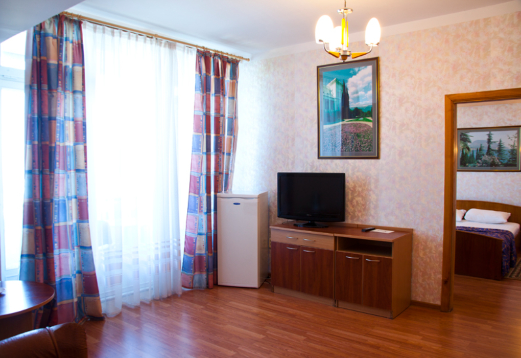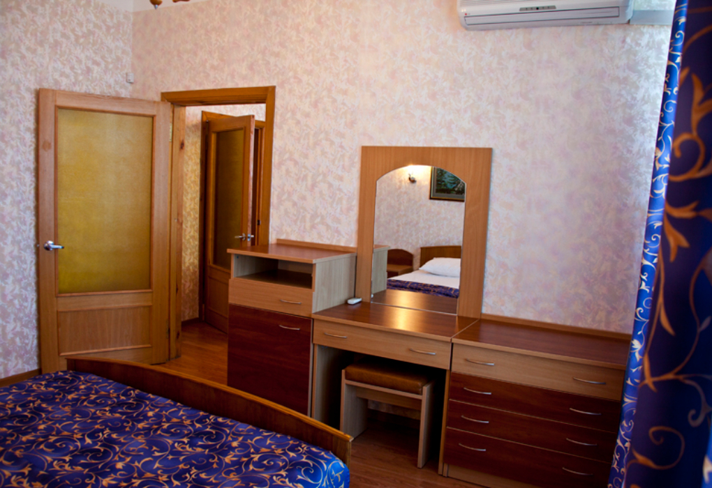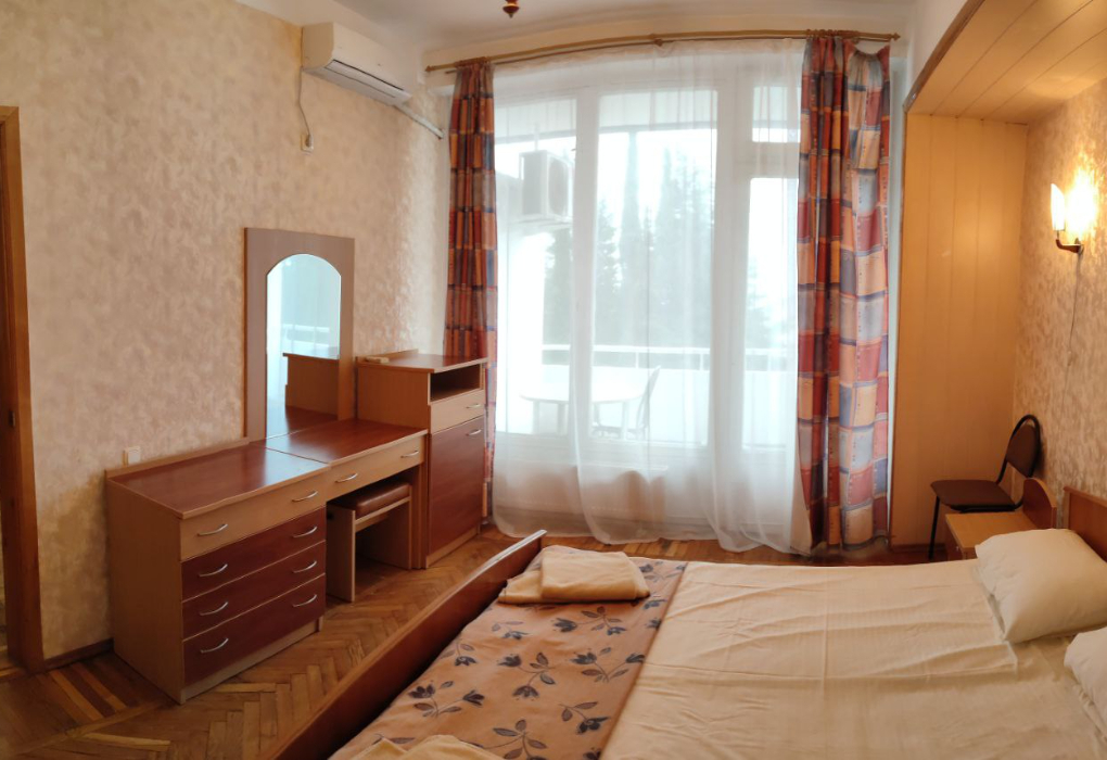 Площадь номера - 27 кв.м. 2 комнаты. 2 осн. места. вид из окна на парковую зону, расположены в корпусе 3 (один номер на 1-м этаже с видом на парковую зону, с отдельным входом) и 4. В номере: телевизор; холодильник; балкон; кондиционер; ванна; туалет; Wi-Fi; 2-спальная кровать; диван. 1 доп. место: Диван - предоставляется без ограничений по возрасту.